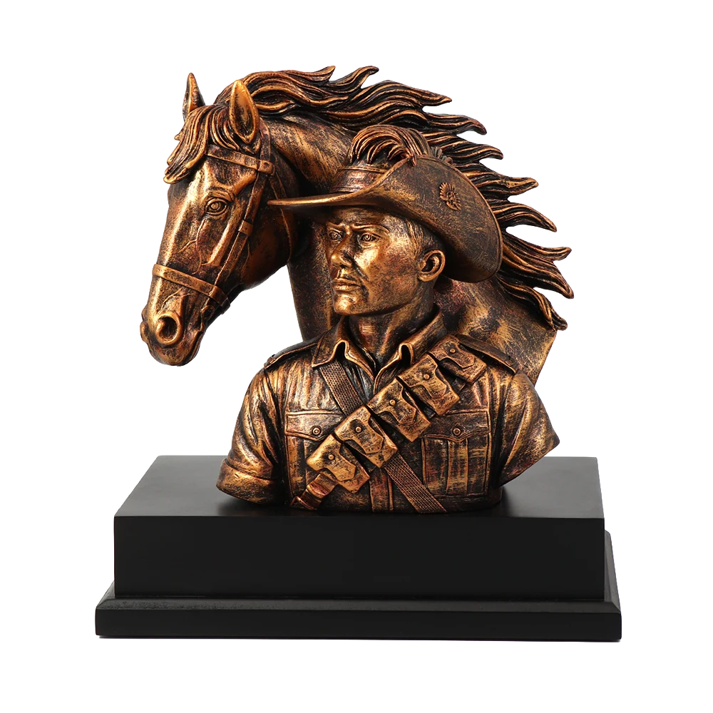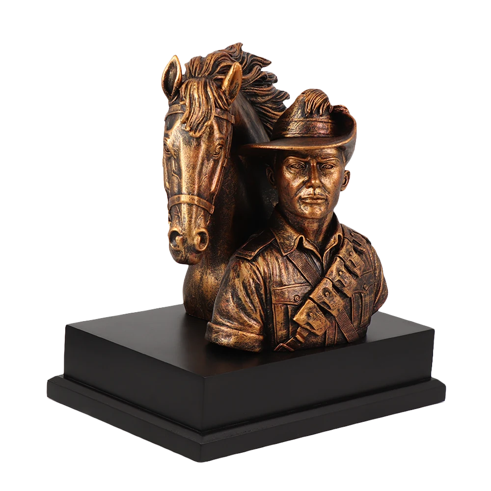 Designed as a centrepiece for home, office or commemorative display, this figurine stands as a lasting symbol of Australia’s mounted service heritage.