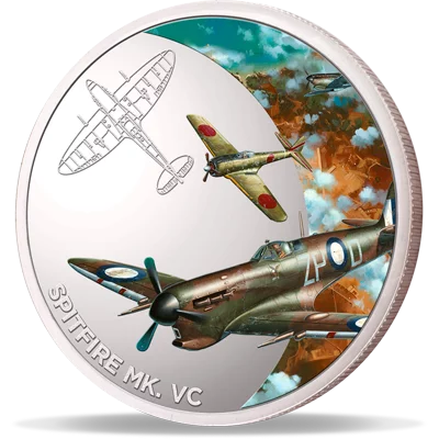 One side showcases the iconic Royal Australian Air Force Spitfire, adorned with distinctive black and white stripes hastily applied for allied forces' aerial identification during the historic Battle of Normandy. On the flip side, honouring the naval aspect of the campaign, is the HMS Kingsmill (technically designated as K 484), a Royal Navy warship with significant Royal Australian Navy, during the historic Battle of Normandy on 6 June 1944.