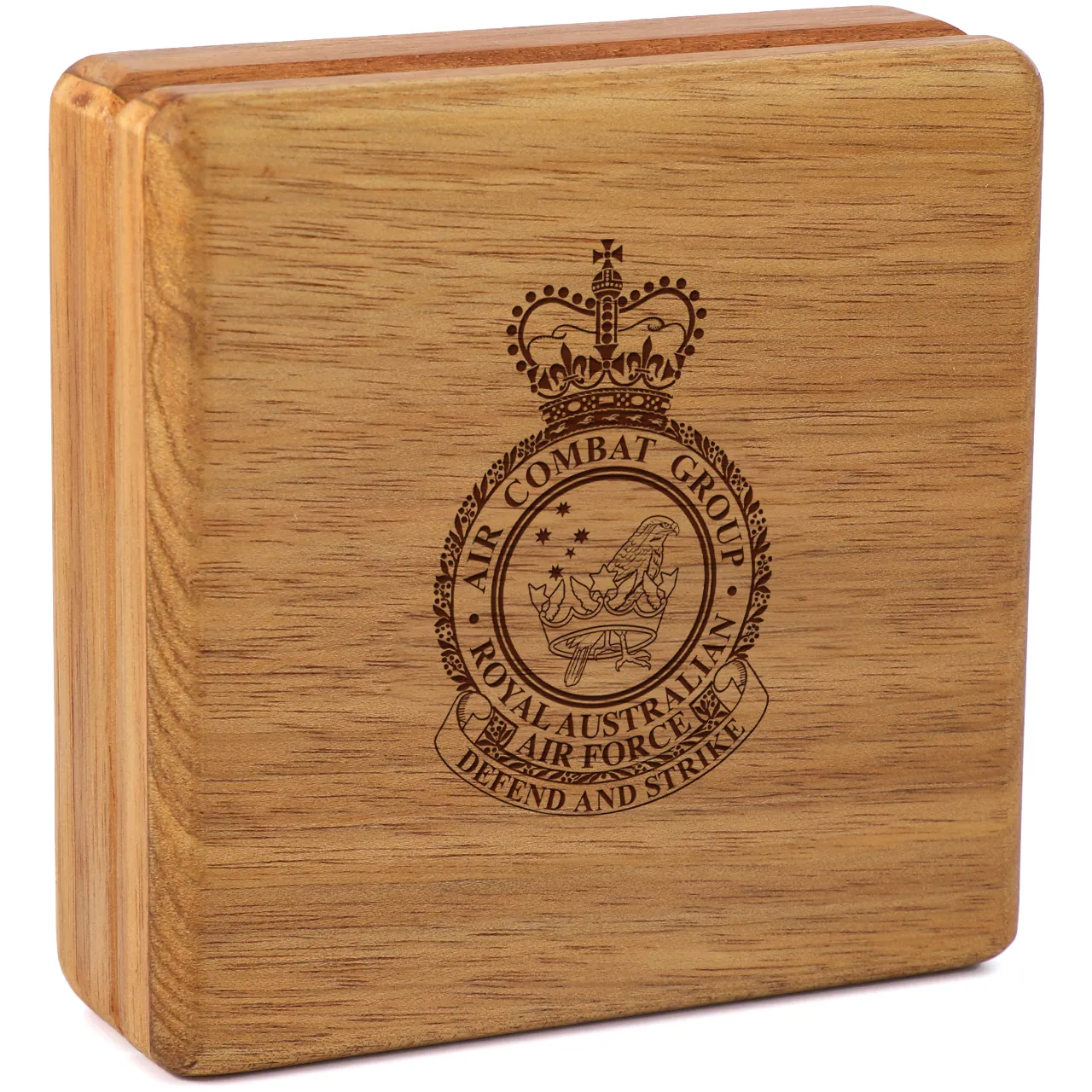 Handcrafted Air Combat Group (ACG) Tasmanian Blackwood Heritage Box with velvet lining and custom engraving. Read more..