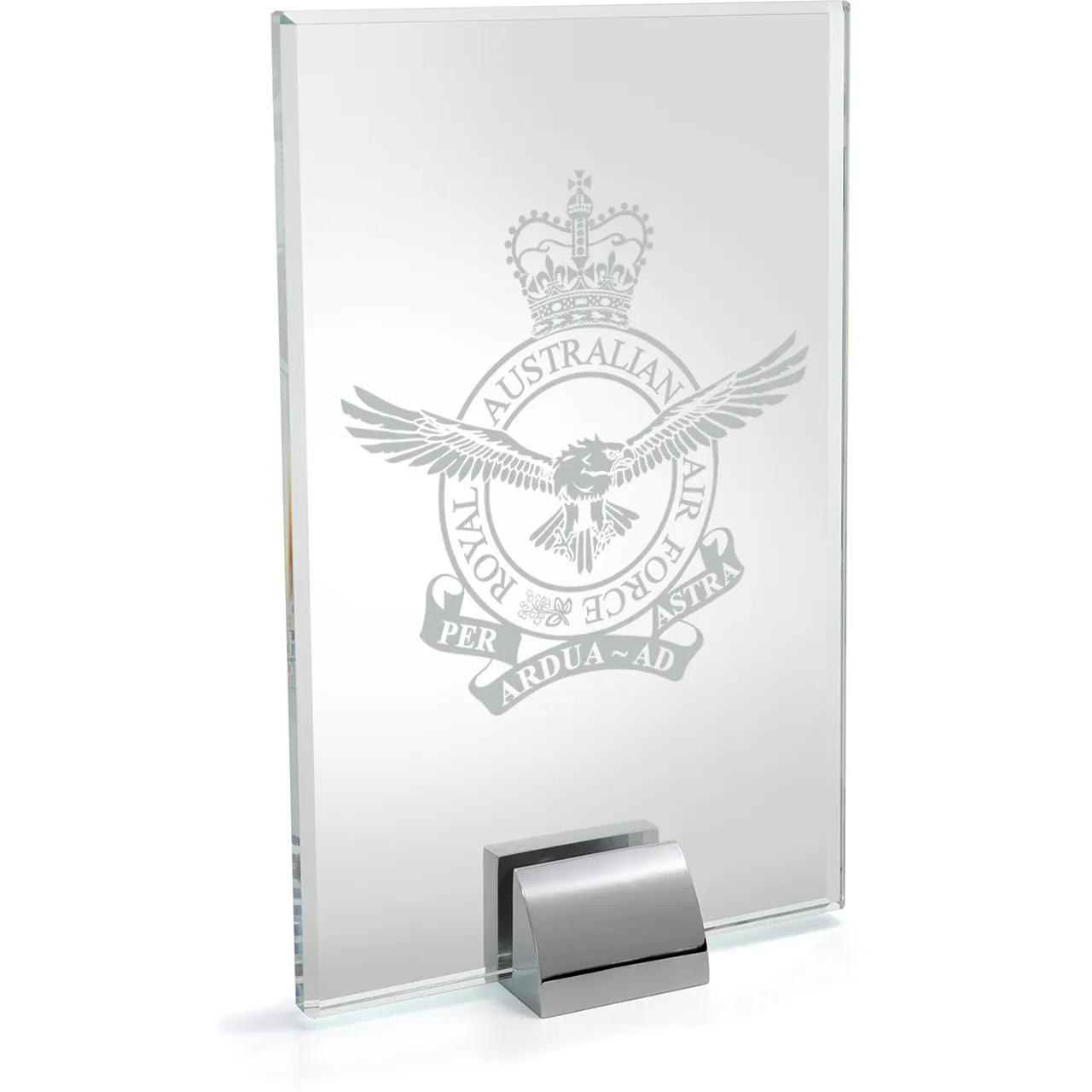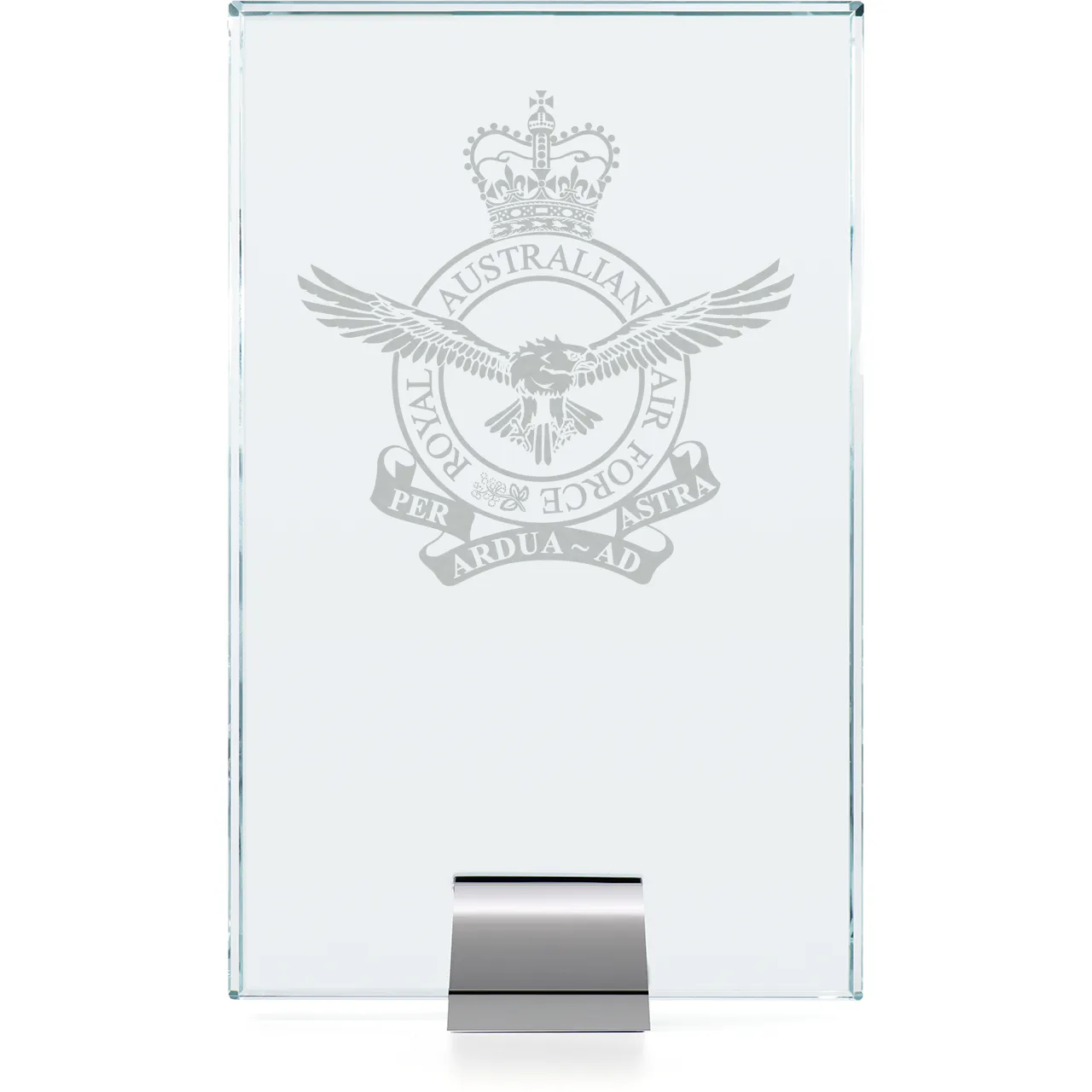The Engraved Air Force Alpha Glass Award is perfect for military ceremonies, recognising exceptional service and achievements. The detachable metal base adds versatility, allowing for easy display options. Ideal as a military presentation gift or farewell gift, this plaque combines sophistication with significance. Celebrate dedication and excellence with this unique award that honours the commitment of our servicemen and women.