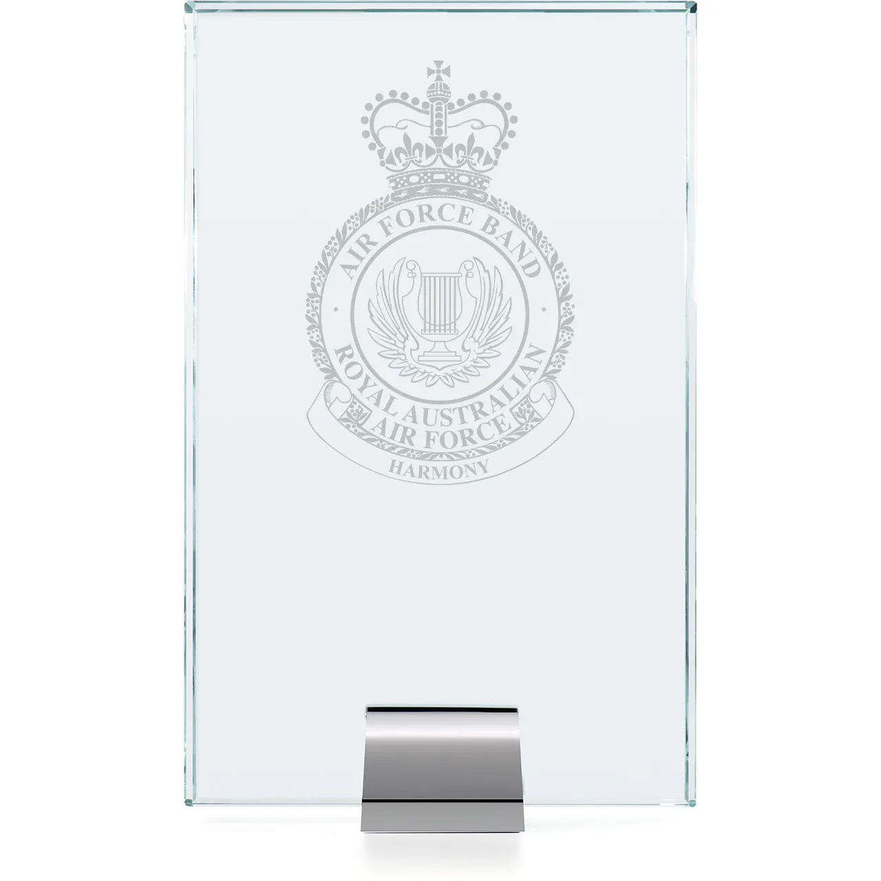 Air Force Band Engraved Alpha Glass Award 205mm is perfect for ceremonies and presentations. Celebrate excellence in military service with this elegant plaque. Read more..