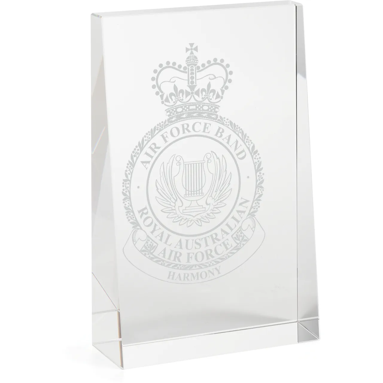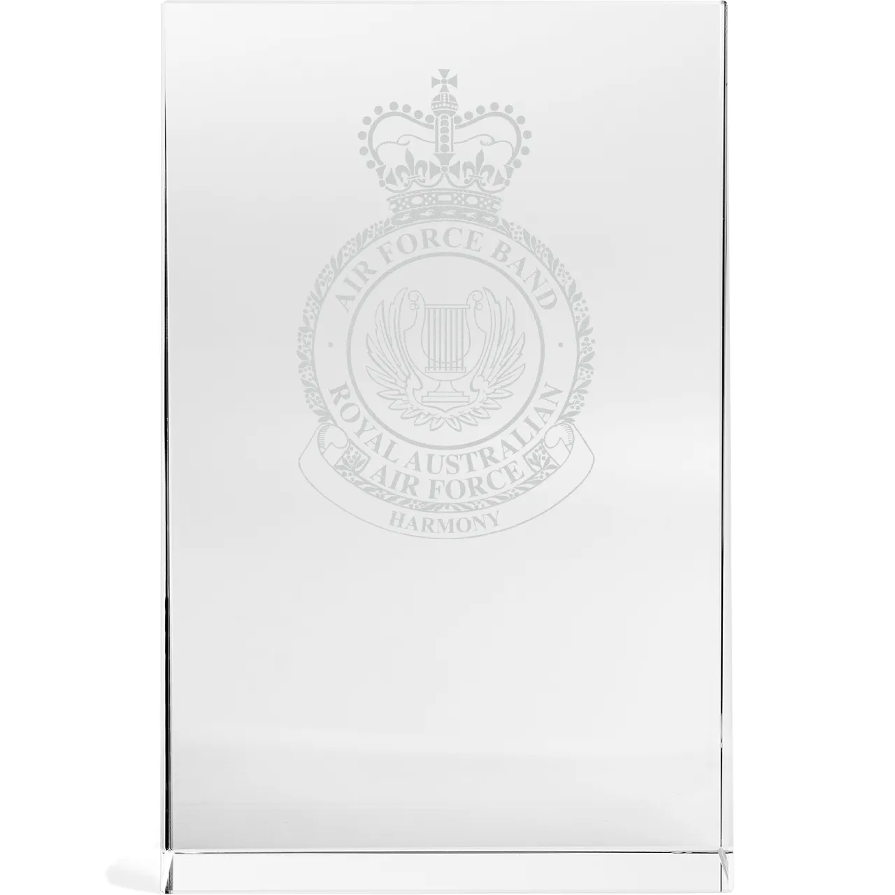 The Air Force Band Engraved Glacier Glass Award 150mm in Gift Box beautifully combines sophisticated design with impeccable execution, making it the ideal choice for military presentation and farewell gifts. Crafted from high-quality glass, it showcases a stunning engraved design that celebrates excellence. Elegantly presented in a gift box, this timeless award leaves a lasting impression, perfect for recognising achievements and honouring service.