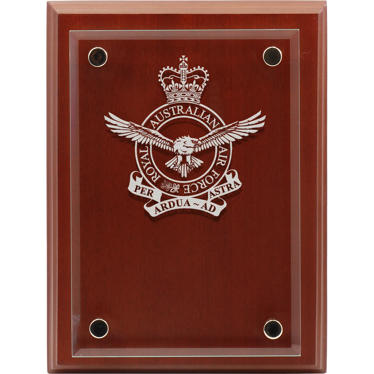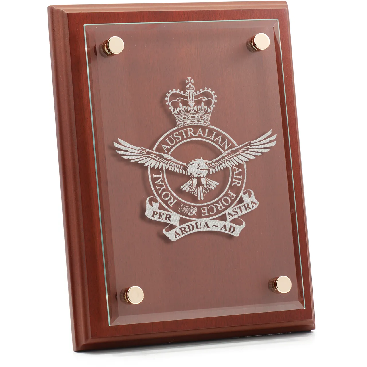 The custom engraved Air Force Delta Floating Glass Award is a distinguished presentation gift, ideal for celebrating milestones and honouring achievements. Crafted from premium glass and timber, this award features a sleek metal stand for easy display and includes a hanger hole for versatile mounting options. Its elegant design makes it perfect for military presentation and farewell gifts, adding sophistication to any ceremony or recognition event. Celebrate excellence with this exceptional award plaque.