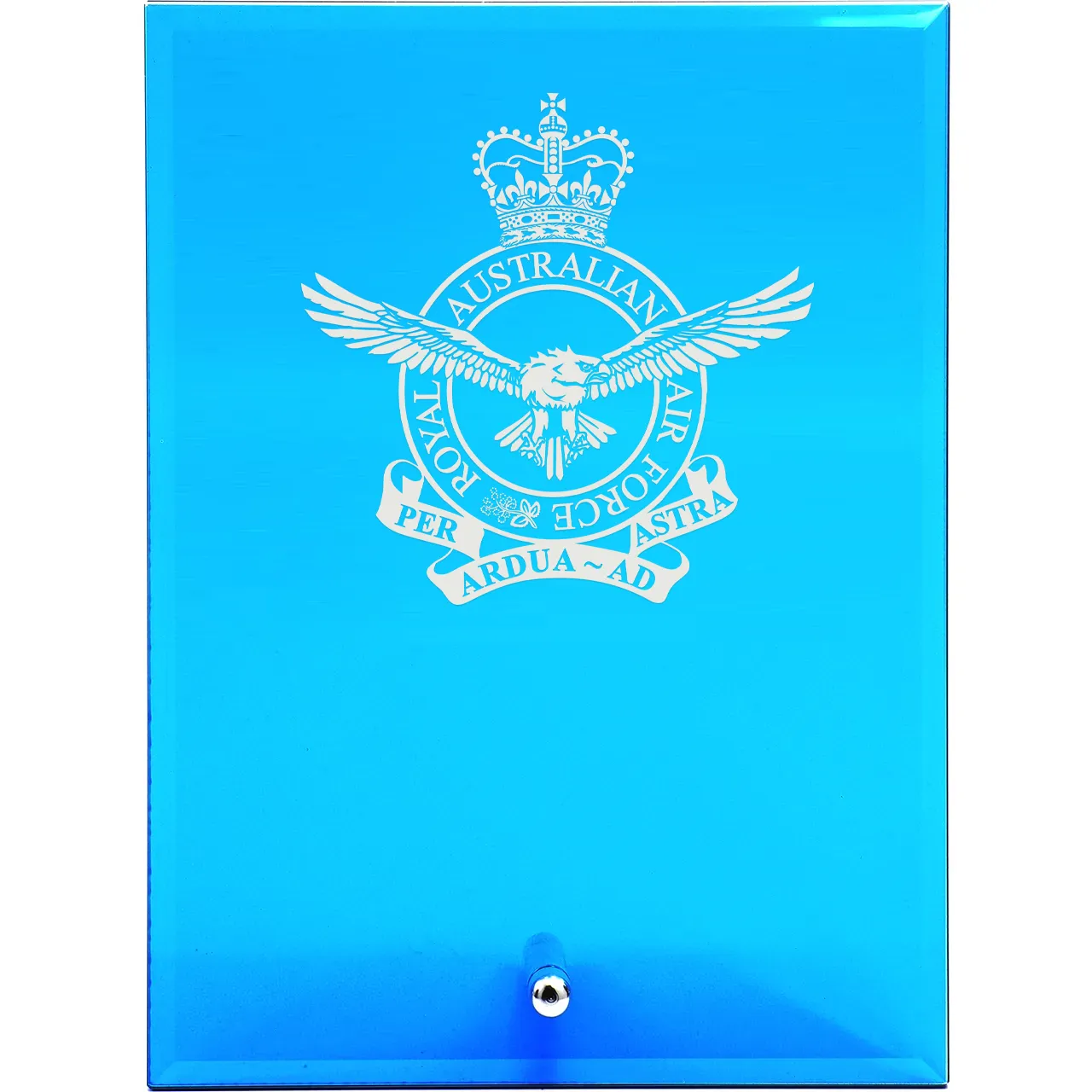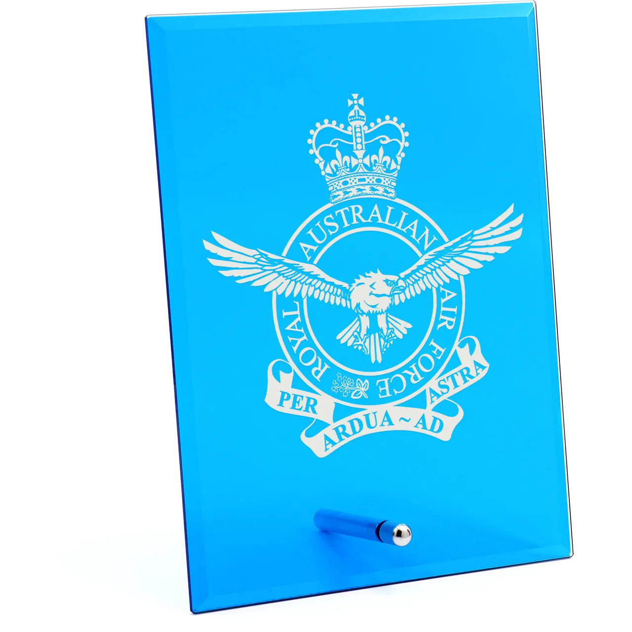 The Air Force Engraved Nebula Blue Glass Award 200mm in Gift Box is a stunning and affordable choice for your awards. Featuring a sleek metal stand, this award plaque is beautifully presented in a gift box, making it ideal for recognising achievements. Perfect as military presentation gifts and farewell gifts, this elegant glass plaque combines sophistication with a personal touch. Celebrate excellence with this versatile award that honours service and dedication, making it a memorable gift.