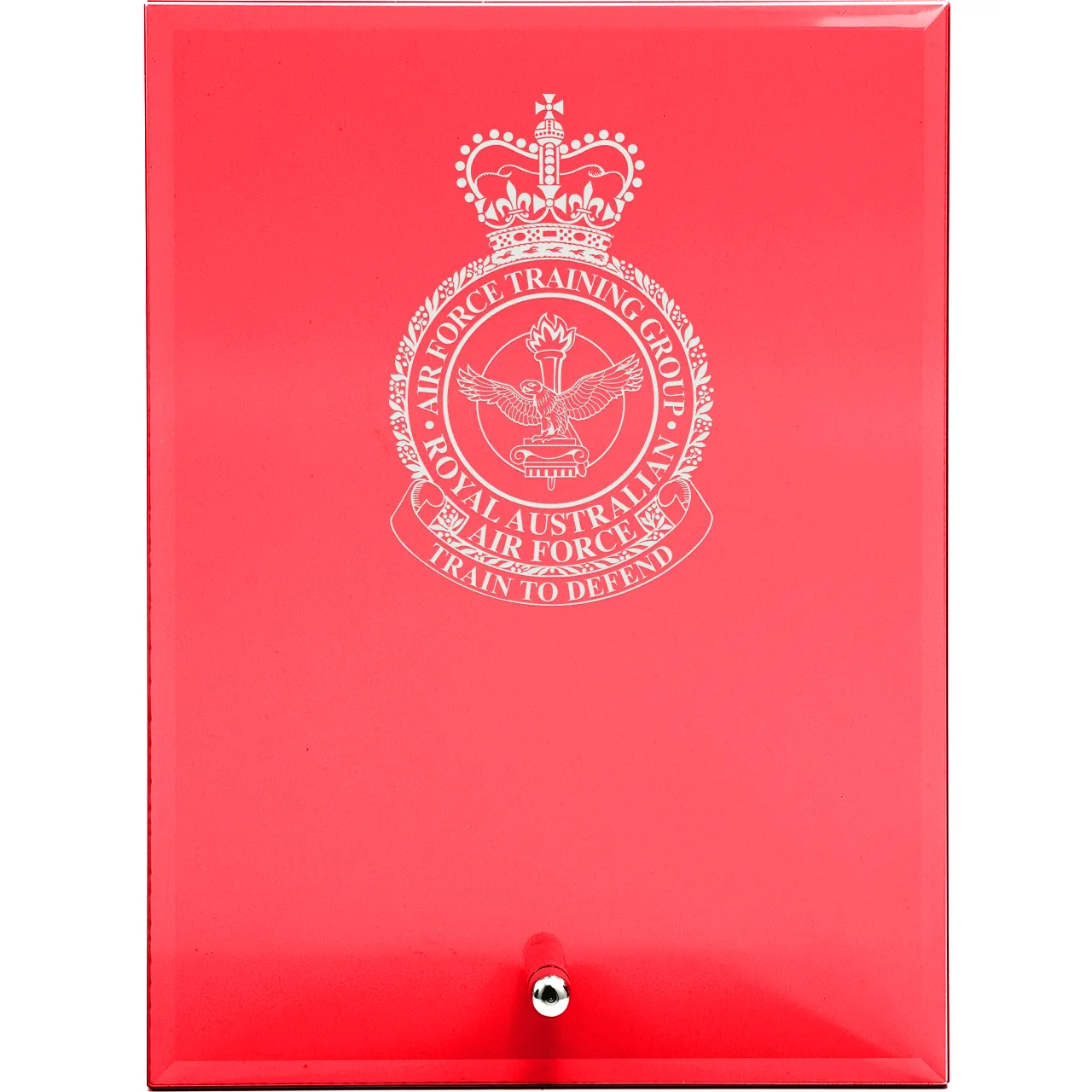 The Air Force Training Group (AFTG) Engraved Nebula Red Glass Award 200mm in Gift Box is a stunning and affordable choice for your awards. Featuring a sleek metal stand, this award plaque is beautifully presented in a gift box, making it ideal for recognising achievements. Perfect as military presentation gifts and farewell gifts, this elegant glass plaque combines sophistication with a personal touch. Celebrate excellence with this versatile award that honours service and dedication, making it a memorable gift.