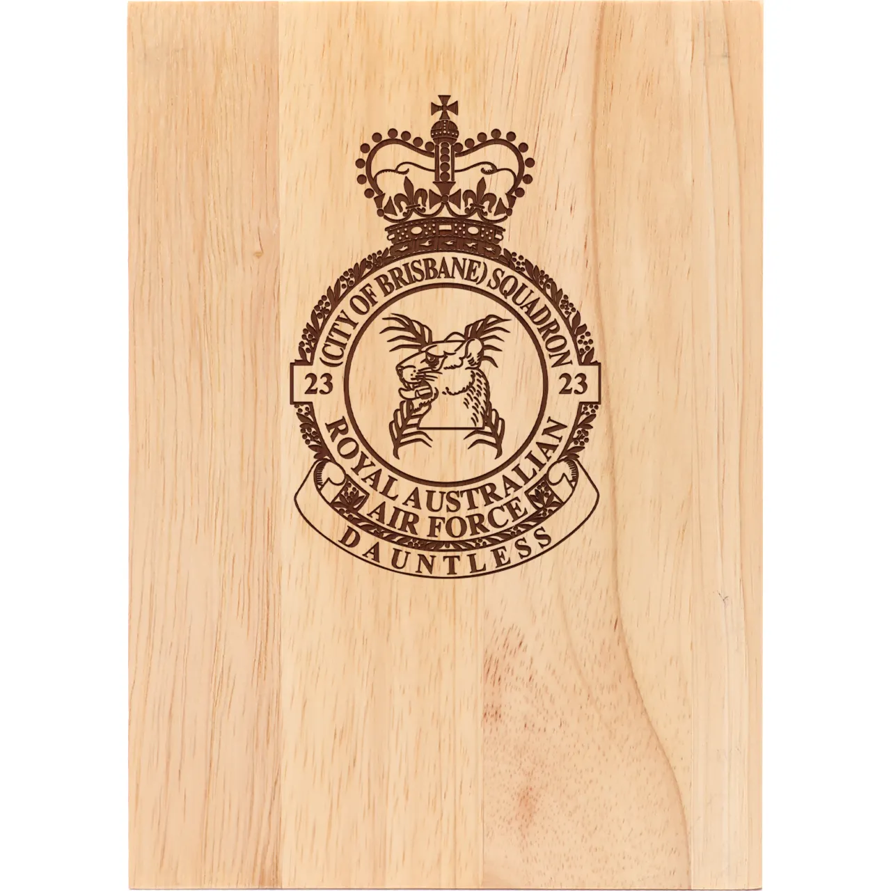 No 23 (City of Brisbane) Squadron Engraved Heritage Wooden Award 175mm is perfect for presentation and farewell gifts. Read more..
