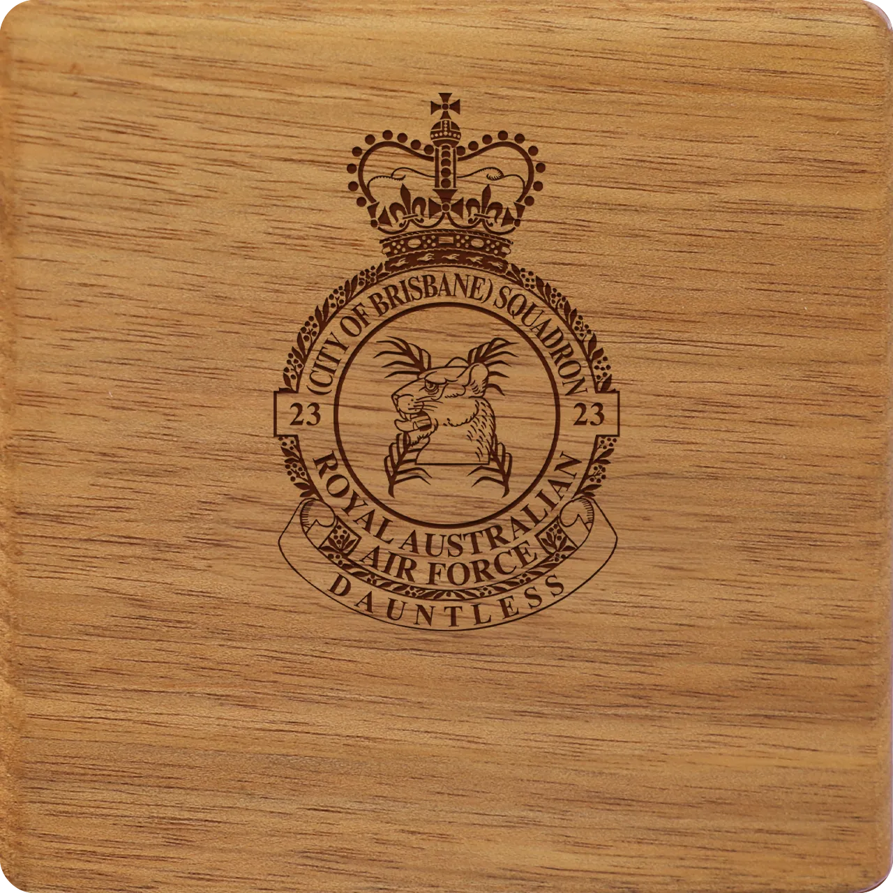 Handcrafted No 23 (City of Brisbane) Squadron (23SQN) Tasmanian Blackwood Heritage Box with velvet lining and custom engraving. Read more..