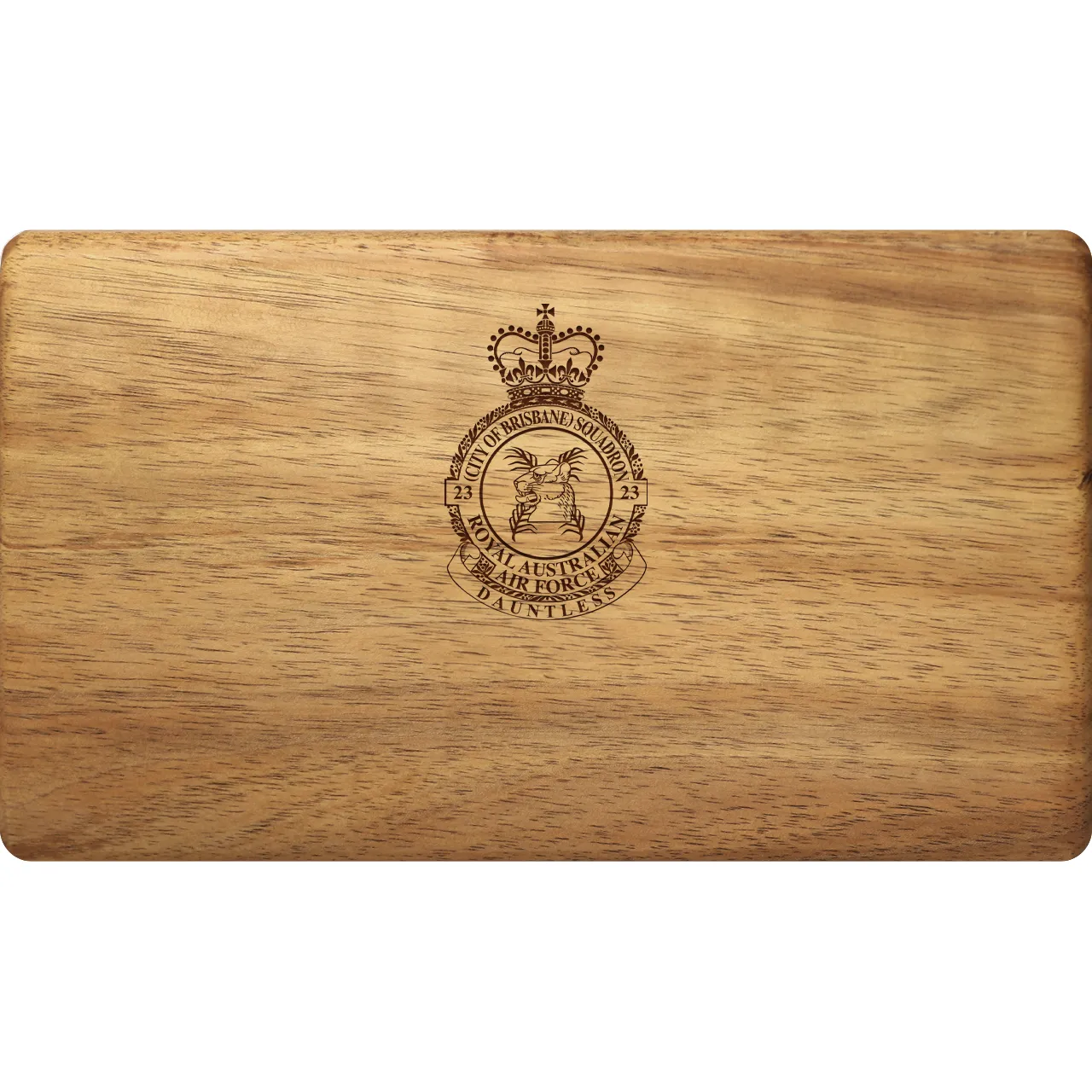 Handcrafted No 23 (City of Brisbane) Squadron (23SQN) Tasmanian Blackwood Two-Tiered Medal Display Box with custom laser engraving – a gift of honour. Read more..