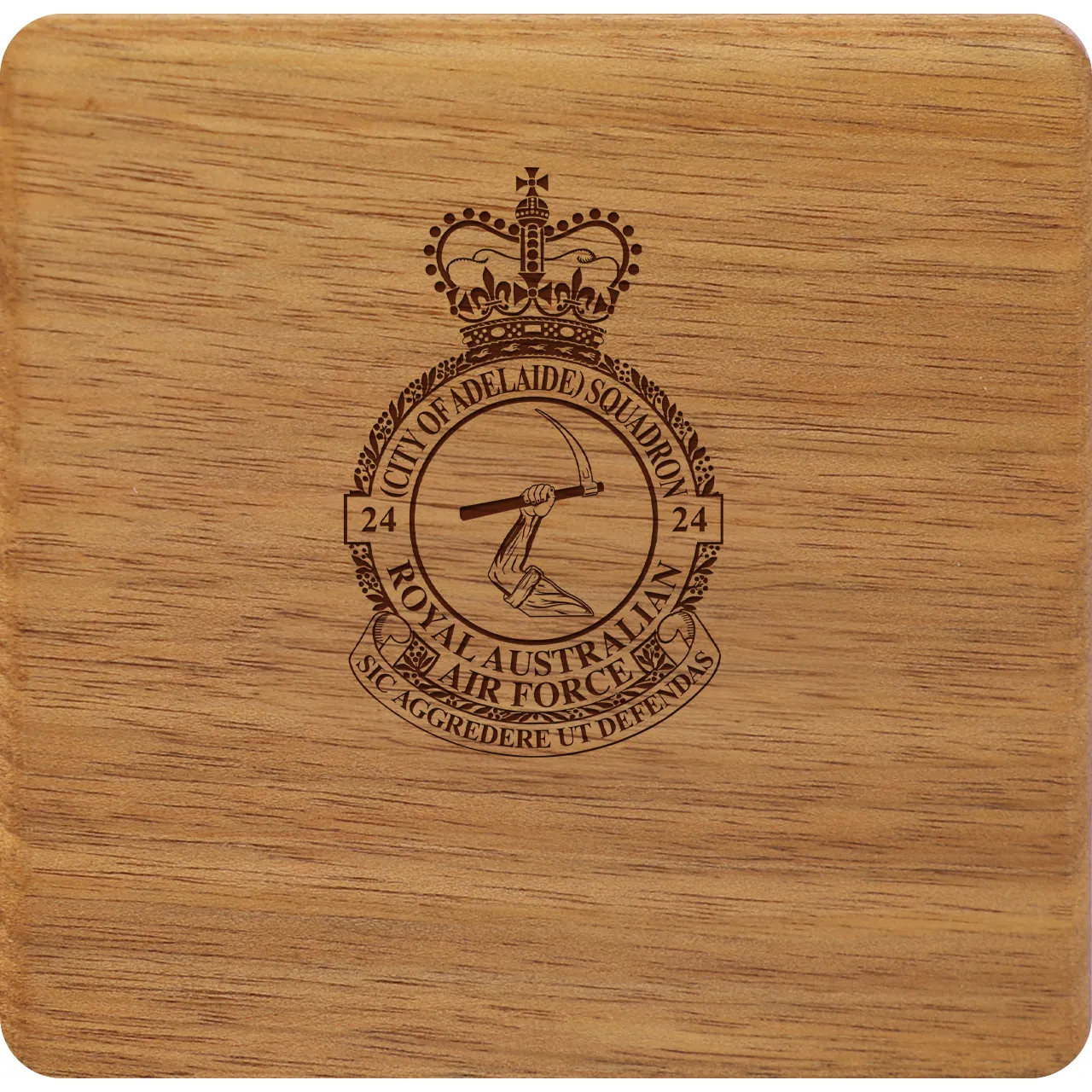 Custom-engraved and handcrafted, No 24 (City of Adelaide) Squadron (24SQN) Tasmanian Blackwood Keepsake Box with velvet lining – perfect for gifting. Read more..