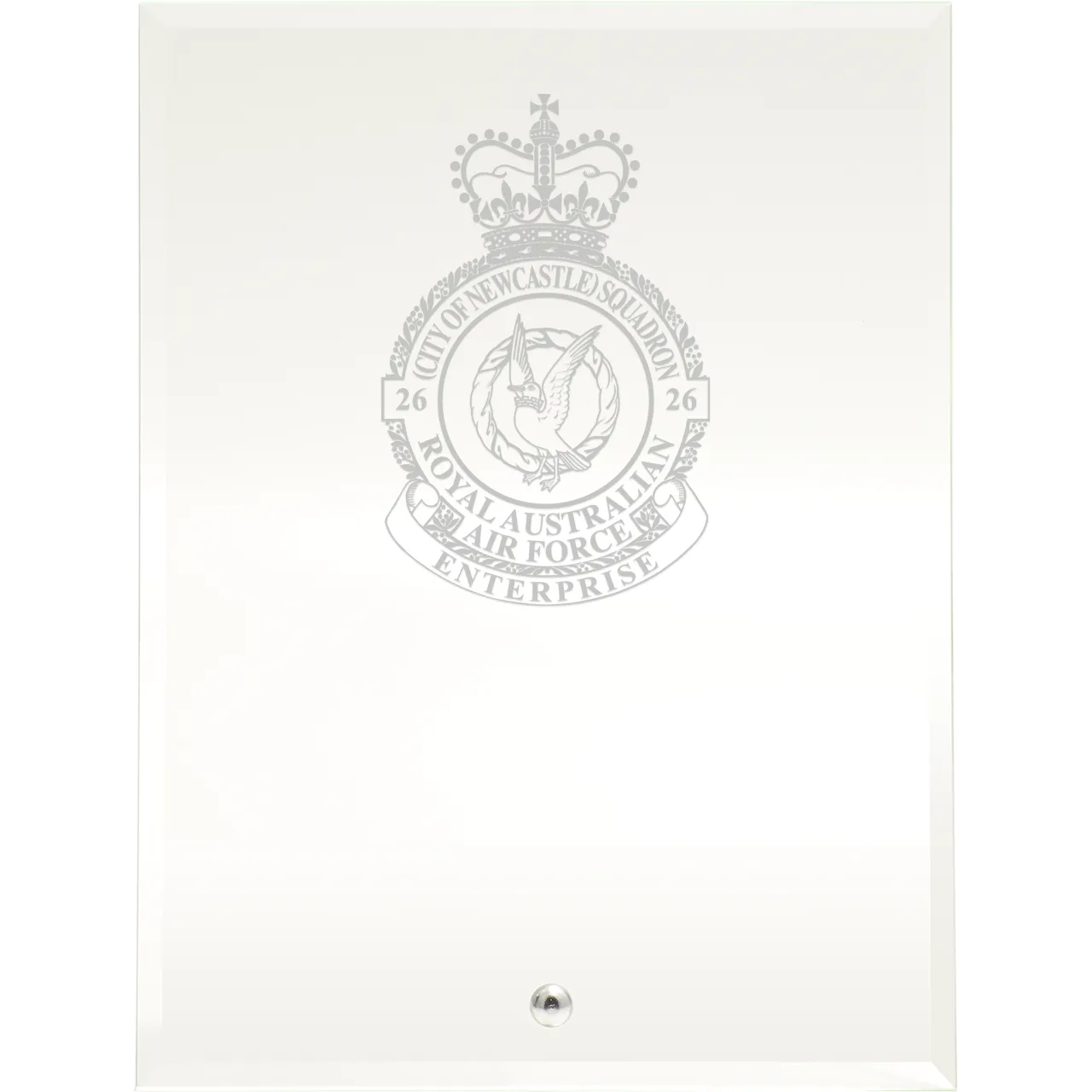No 26 (City of Newcastle) Squadron Engraved Essence Glass Award 200mm celebrates excellence and military service with elegance. Read more..
