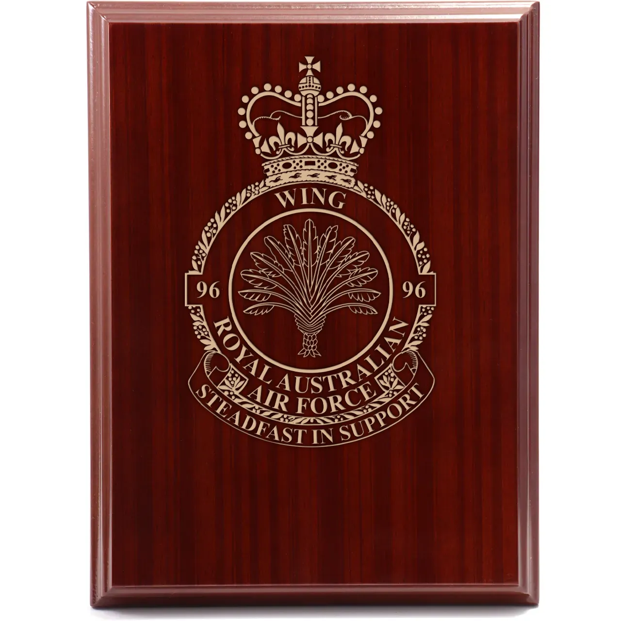 The No 96 Wing (96WG) Engraved Omega Timber Award 200mm is an exceptional choice for military presentation and farewell gifts. Perfect for honouring service members or commemorating special milestones, the award beautifully combines elegance and tradition, ensuring a lasting impression.
