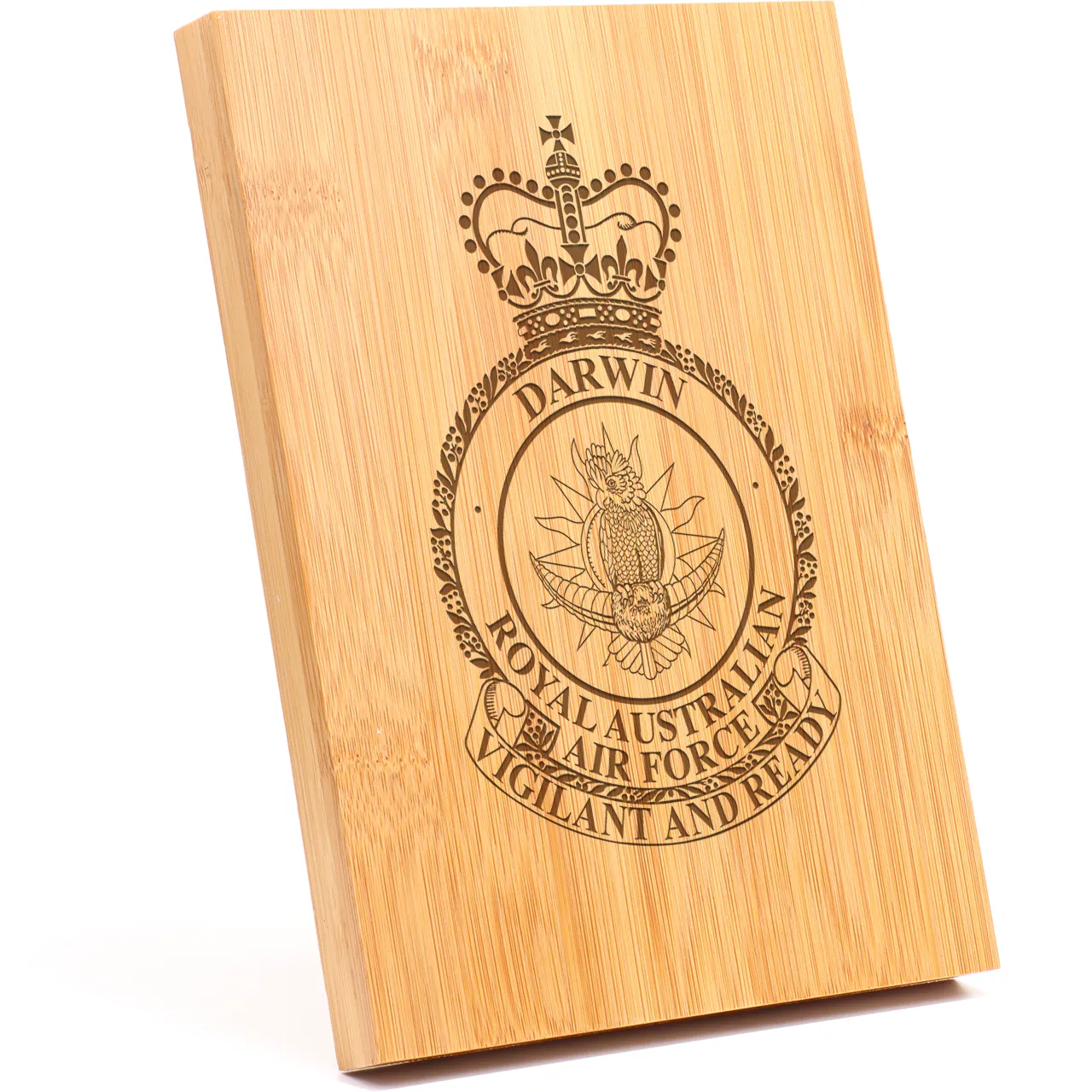 The RAAF Base Darwin (RAAFDAR) Engraved Apex Bamboo Award 200mm is the ideal choice for recognising excellence in military achievements. Crafted from high-quality bamboo, this award features a sleek modern design with clean, straight edges that make it an eye-catching addition to any presentation. Each plaque includes a sturdy metal stand, ensuring it takes pride of place on any desk or display. Perfect as military presentation gifts or farewell gifts, this award is a meaningful way to honour service and dedication.