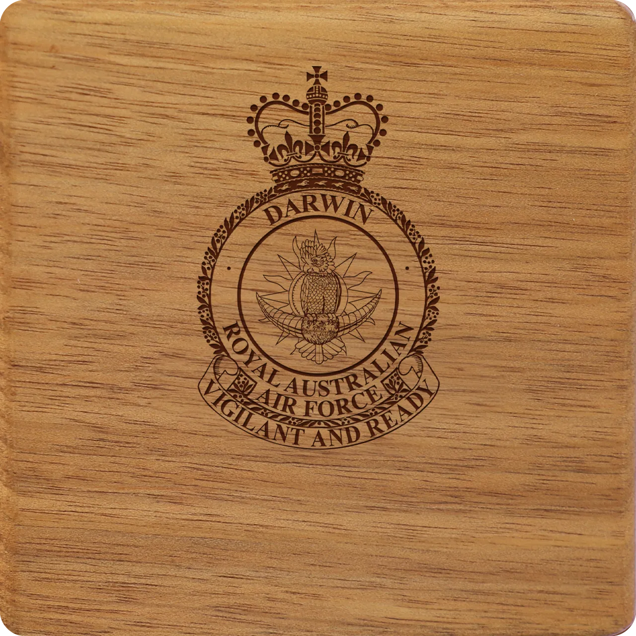 Handcrafted RAAF Base Darwin (RAAFDAR) Tasmanian Blackwood Heritage Box with velvet lining and custom engraving. Read more..