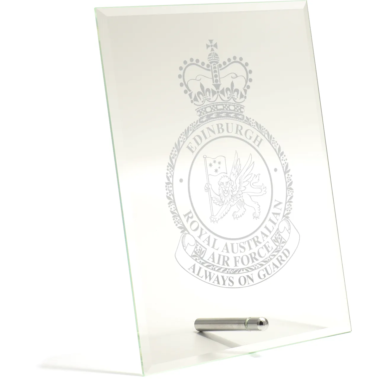 RAAF Base Edinburgh Engraved Essence Glass Award 200mm celebrates excellence and military service with elegance. Read more..