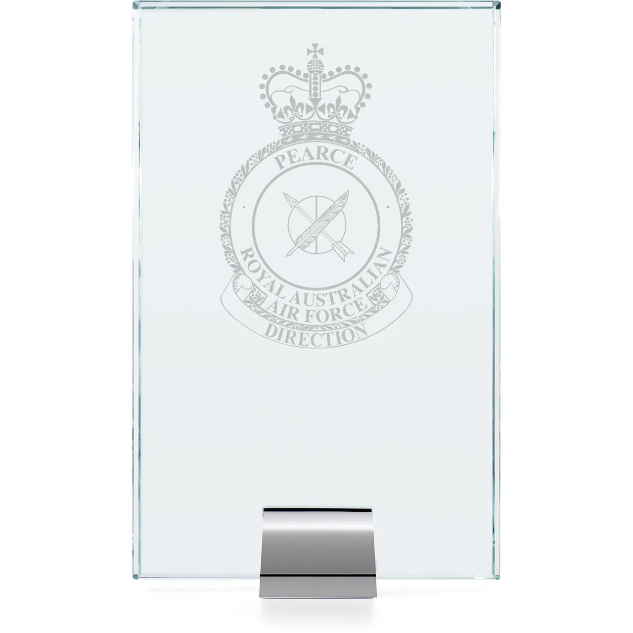 The RAAF Base Pearce (RAAFPEA) Engraved Alpha Glass Award 205mm is perfect for military ceremonies, recognising exceptional service and achievements. The detachable metal base adds versatility, allowing for easy display options. Ideal as a military presentation gift or farewell gift, this plaque combines sophistication with significance. Celebrate dedication and excellence with this unique award that honours the commitment of our servicemen and women.