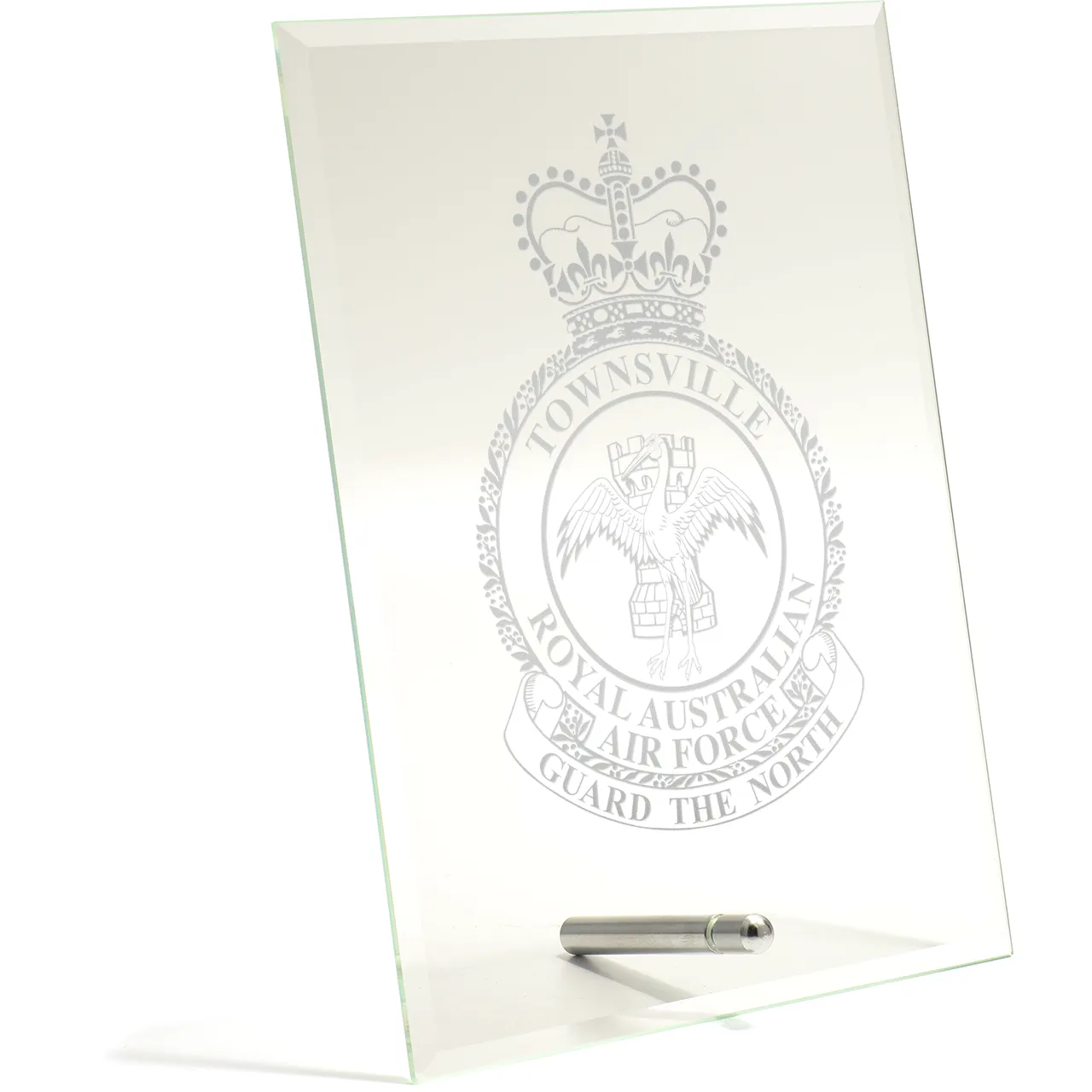 RAAF Base Townsville Engraved Essence Glass Award 200mm celebrates excellence and military service with elegance. Read more..