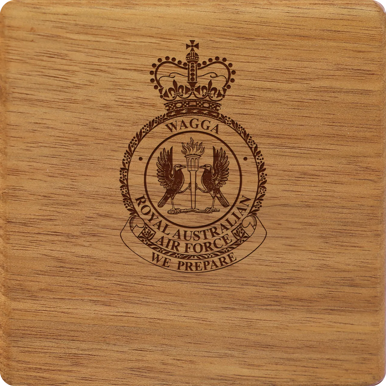 Handcrafted RAAF Base Wagga (RAAFWAG) Tasmanian Blackwood Heritage Box with velvet lining and custom engraving. Read more..
