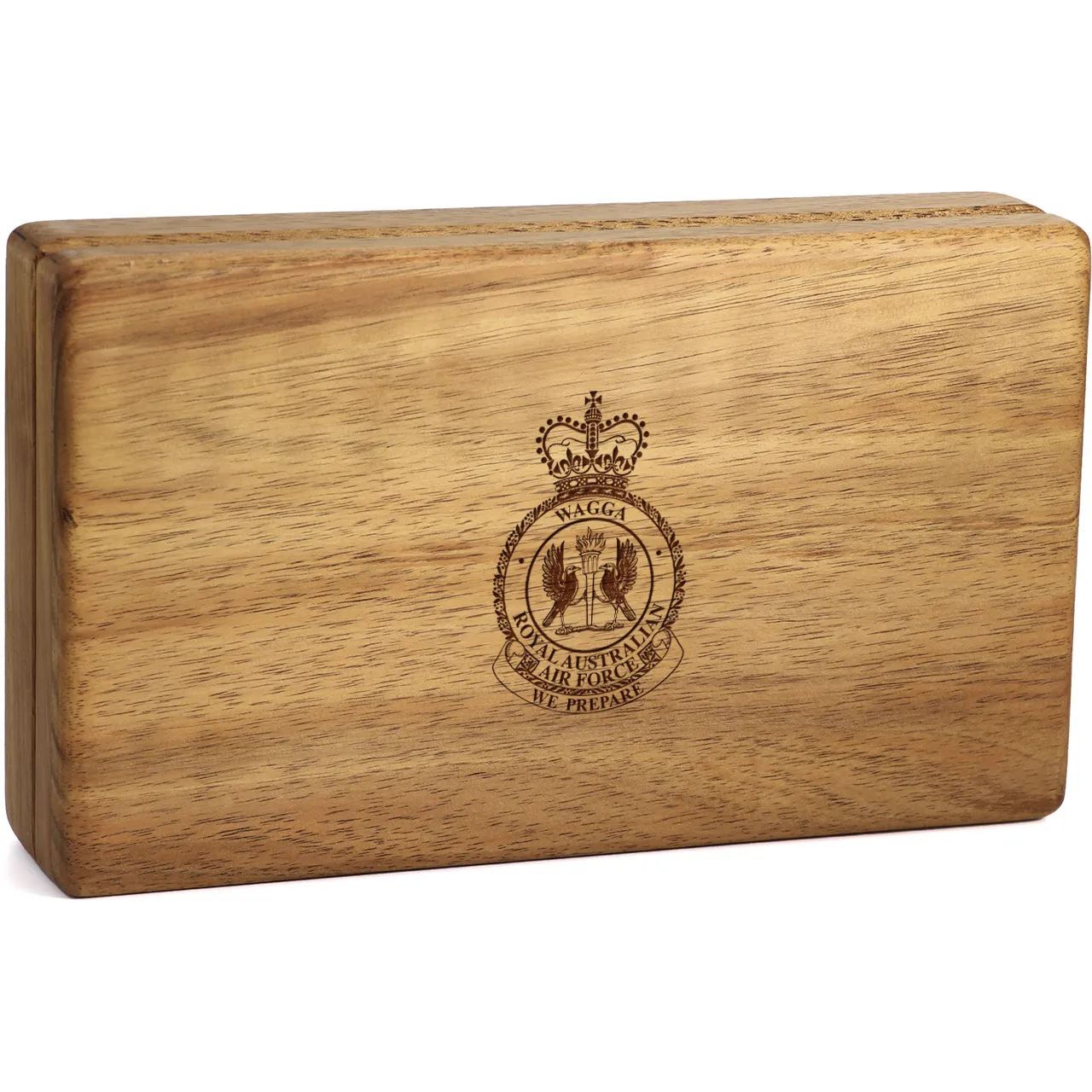 Handmade and laser engraved RAAF Base Wagga (RAAFWAG) Tasmanian Blackwood Medal Display Box – a timeless gift of honour Read more..