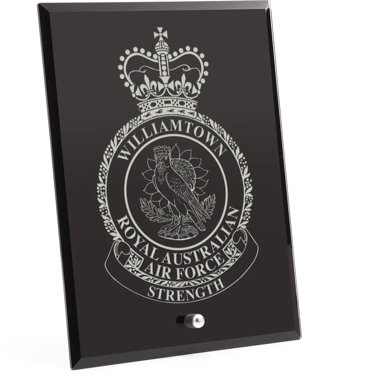 RAAF Base Williamtown Engraved Nebula Black Glass Award 200mm in Gift Box is perfect for recognising achievements and military presentations. Read more..